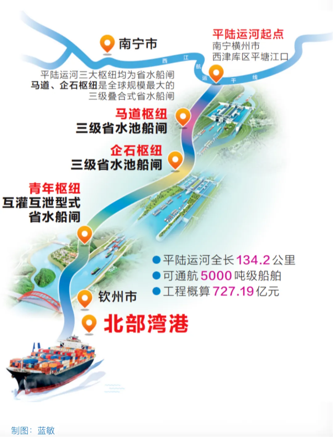 今年5月底,广西壮族自治区党委书记陈刚在《党建》杂志发表的署名文章谈及平陆运河建设进展:“一河贯通、八桂向海”的世界级运河雄姿初步显现。
