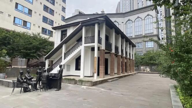 旧址外,一组定格了《在太行山上》的创作瞬间的群雕同样令人印象深刻,冼星海俯身钢琴前,指尖跳跃,周恩来与郭沫若端坐一旁,轻声合唱。“千山万壑,铜壁铁墙!抗日的烽火,燃烧在太行山上!”这首歌曲一经唱响,便如惊雷般传遍全国。冼星海在“三厅”期间,深入学校、农村、厂矿,辅导歌咏队练唱,谱写了20多首抗战歌曲,80多年前,正是这些律动的音符、跳跃的文字,激励了万千民众团结抗击日寇!
