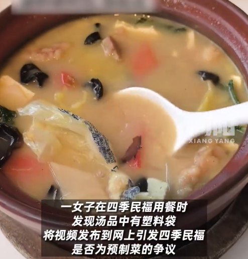 女子在四季民福汤品中吃出塑料袋 四季民福否认