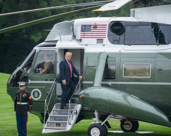 9月16日,在美国首都华盛顿,美国总统特朗普登机离开白宫。新华社记者胡友松摄