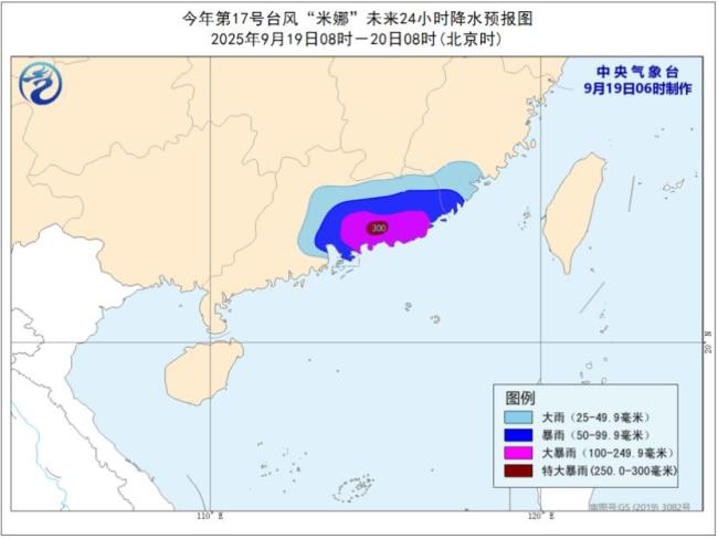 中央气象台9月19日06时发布暴雨蓝色预警和台风蓝色预警。