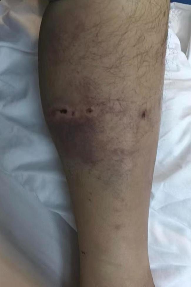 躺在病床上的李某讲述了自己被黑熊袭击的经过。他说,袭击他的黑熊有一两百斤重。当时,他在返回途中与黑熊正面相遇。黑熊突然发动袭击,咬了他的小腿并将其打下山坡。慌乱中,李某的一只水鞋掉落,黑熊咬着鞋跑了。李某表示,正是这只水鞋救了他一命,因为有水鞋的保护,小腿受伤并不严重。