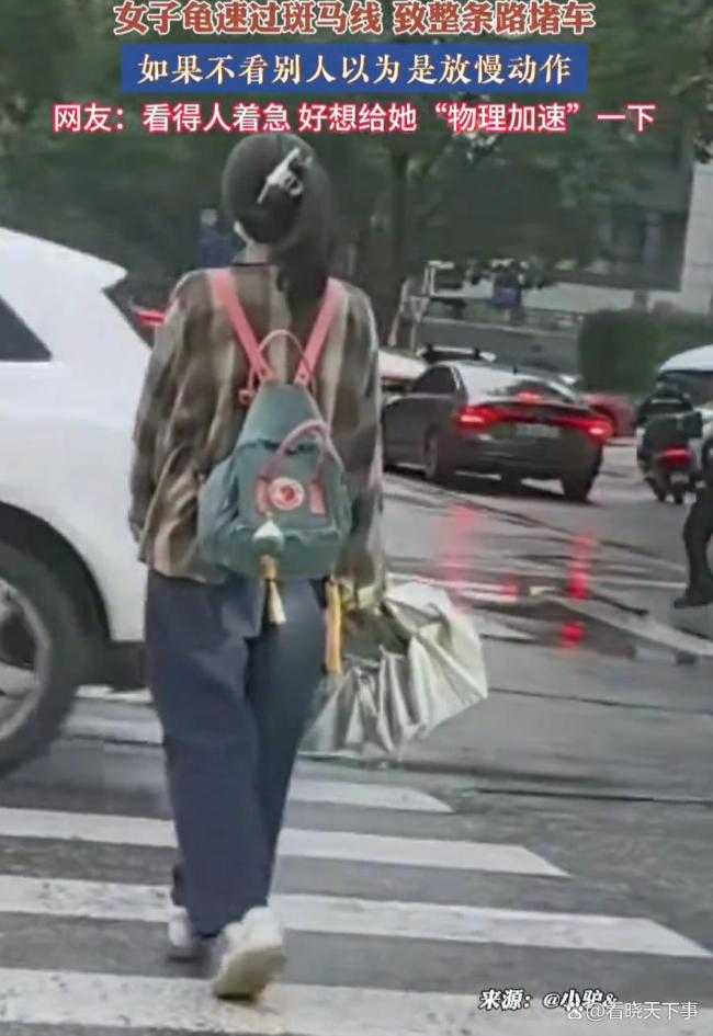 从视频里看,她戴着口罩,背着书包,手里还拿着一把伞,一步一步挪得特别缓,周围的车主估计都急得不行,但她好像完全没听见喇叭声,动作就像放了慢镜头