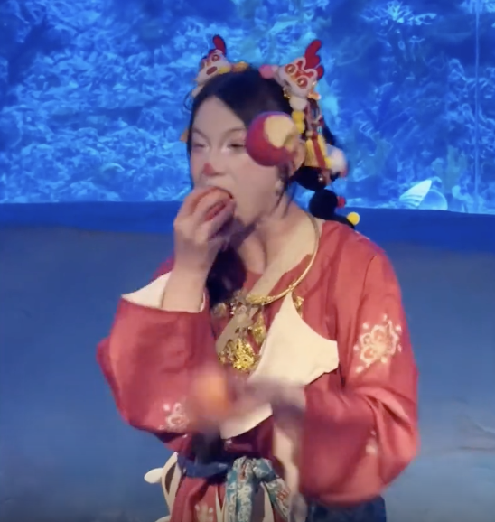00后女生海洋馆抛苹果边抛边啃。近日,广东广州。“00后”女生自学手技杂耍,在海洋馆表演“边抛苹果边吃”,赢得全场喝彩!网友:不愧是“00后”!