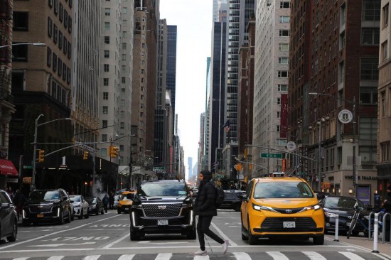 1月5日,在美国纽约曼哈顿,行人通过人行横道。新华社记者刘亚南摄