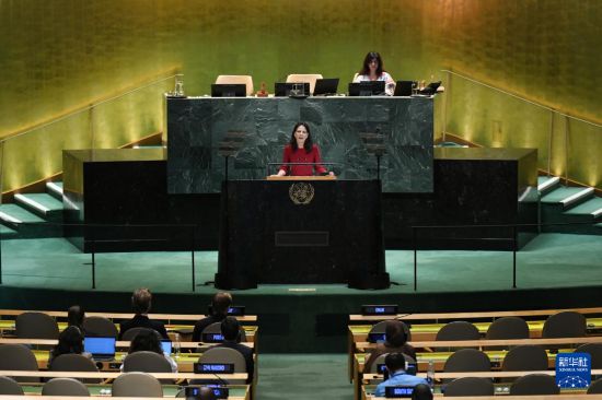 9月29日,在位于纽约的联合国总部,第80届联大主席贝尔伯克在发表联合国大会一般性辩论闭幕致辞。新华社记者李睿摄