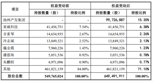 不过几经波折后,最终在2023年6月画上了句号。随后,2025年1月,亚威股份宣布扬州产发集团将通过定向增发成为公司控股股东,扬州市国资委将成为公司实际控制人,并在9月23日盘后更新了最新的发行预案。