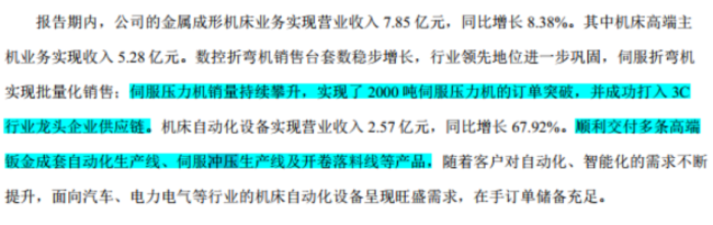 扩大伺服压力机及自动化冲压线产能则有助于亚威股份提升高端装备制造领域的竞争力,公司年报及半年报显示服压力机和伺服冲压生产线持续在头部企业取得突破,截止6月底在手订单6,117.5万元。