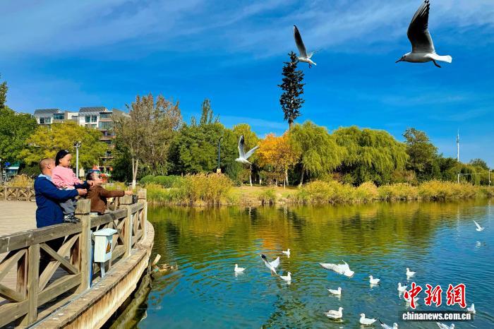 “每年这个时候我都会带着孩子来湖边看红嘴鸥,它们一点都不怕人。”清晨,在银川宝湖公园,市民王晓琳将面包屑抛向空中,成群的红嘴鸥灵巧地俯冲啄食,引得孩子欢呼雀跃。观鸟、摄影、散步,已成为许多银川市民秋日的必备活动。