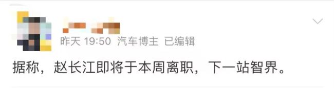 对于离职一事,赵长江本人亲自做出回复:“真的”。不过至于去向是否真的为智界,暂时还不清楚。