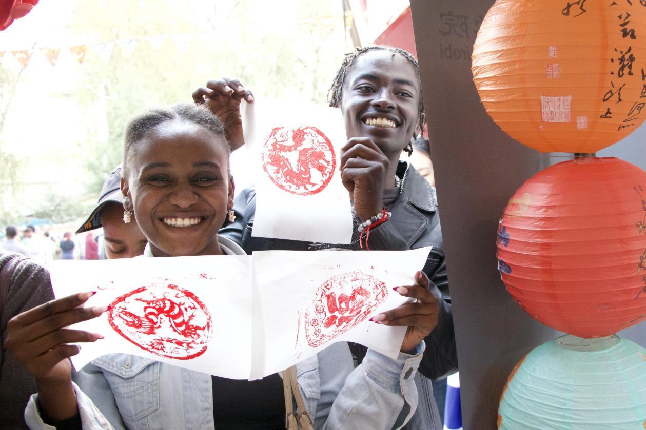 演出前,戏剧大篷车艺术团还和内罗毕大学孔子学院、肯雅塔大学孔子学院共同在剧院外广场举办文艺表演、文化体验互动和荆楚小吃品鉴等暖场活动。