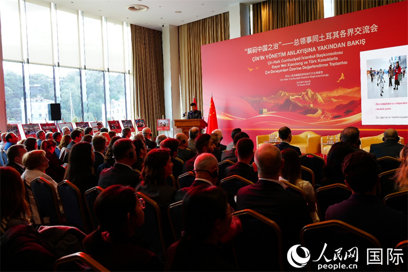 人民网伊斯坦布尔11月27日电 (记者李明)当地时间11月26日,中国驻伊斯坦布尔总领事馆举办“解码中国之治”——总领事同土耳其各界交流会。中国驻伊斯坦布尔总领事魏晓东出席并发表主旨演讲。土工商界、智库、媒体、高校代表,领区中资企业和机构负责人等160余人出席。