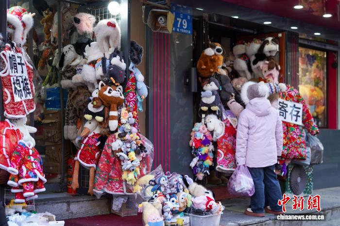 12月2日,黑龙江哈尔滨,商铺门口挂满保暖衣物。当日,黑龙江哈尔滨最高气温今冬首次降到-10℃以下 ,在哈尔滨红专街早市,棉帽子、大花袄等保暖物品摆上街头,游人纷纷选购。中新社记者 赵宇航 摄
