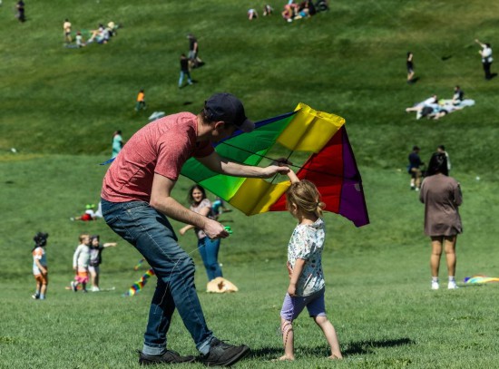2023年10月1日,在澳大利亚堪培拉国家植物园,人们在风筝节上放风筝。新华社发(储晨摄)