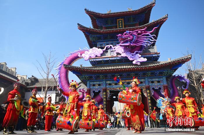 3月20日,在位于甘肃省兰州市的兰州老街,祥龙献瑞民俗活动进行中。当日是中国农历马年二月初二,兰州老街举行了祥龙献瑞、彩龙翻飞、龙跃老街等二月二传统民俗活动,以祈愿鸿运抬头、风调雨顺。中新社记者 李亚龙 摄