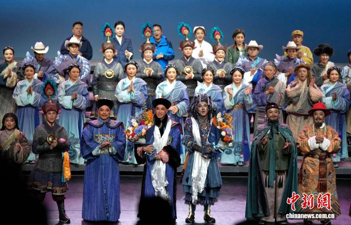 图为藏·粤史诗剧《驻藏·张大人》演出结束后,演员谢幕。中新社记者 李林 摄