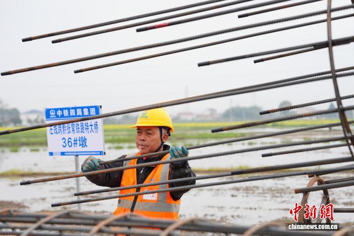 图为工人进行桩基钢筋笼吊装作业。中新社记者 杨华峰 摄 图为工人进行桩基钢筋笼吊装作业。中新社记者 杨华峰 摄