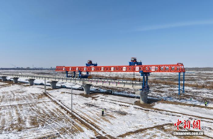 中新网佳木斯3月20日电 (记者 史轶夫)3月20日,黑龙江同江寒风未歇,新建同江特大桥施工现场一片火热。随着架桥机将一片长32.6米、重134.25吨的T型梁稳稳架设在157-158号墩柱间,中欧班列“东通道”口岸段最长桥梁正