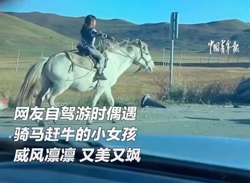网友川西偶遇骑马赶牛小女孩 威风凛凛又美又飒