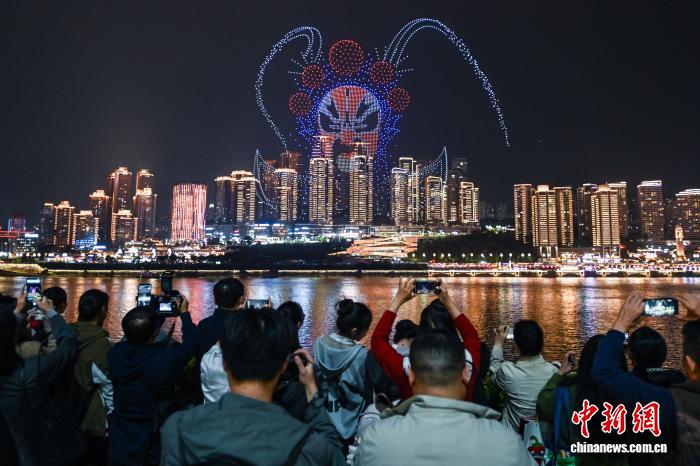 “新韵重庆”无人机灯光秀点亮第十四届中国艺术节闭幕之夜