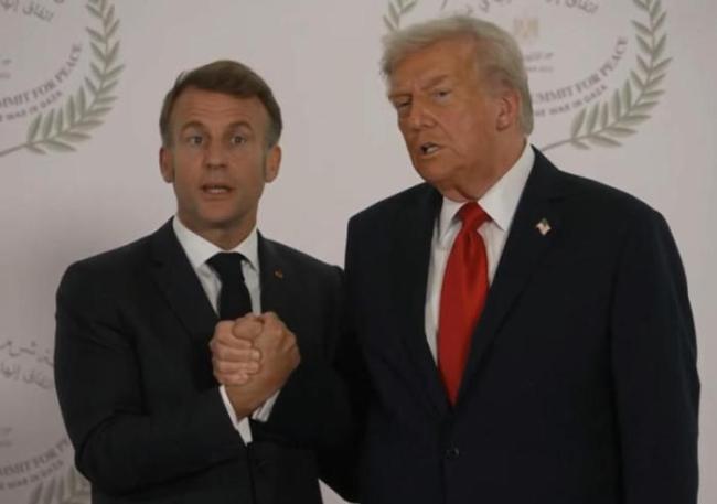 特朗普与马克龙上演掰手腕式握手 26秒“锁死”较量