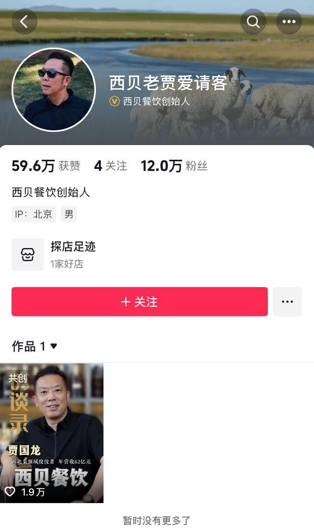 9月28日,西贝餐饮创始人贾国龙的抖音账号仅保留一条公开视频作品,发布于2024年9月30日,内容为“大熊专访贾国龙”,涉及西贝餐饮成长史,称西贝是西北菜领域的佼佼者,年营收达62亿。同时,贾国龙的小红书账号和微信公众号均被清空